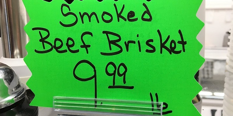 We think these signs say plenty enough. Come in and get your choice of Smoked Corned Beef Brisket or Smoked Beef Brisket. Or get them both. You can’t go wrong either way.